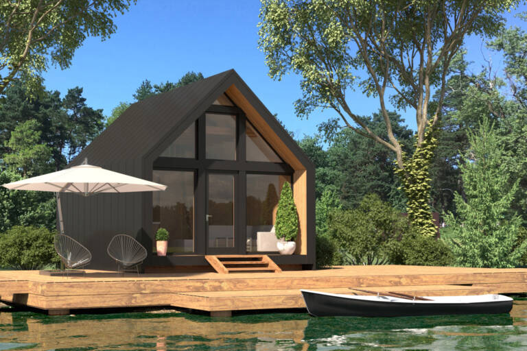 Drewniany dom modułowy funkcjonalny w minimalistycznym stylu doskonale sprawdzi się jako dom wakacyjny lub całoroczny.