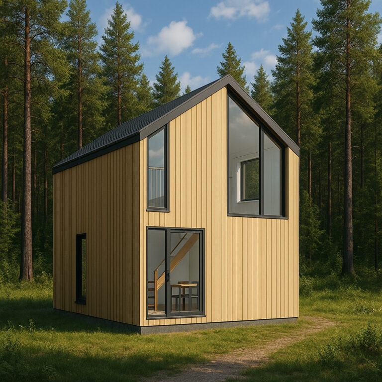 Kompaktowy, funkcjonalny drewniany domek, idealny na weekendowe wypady lub jako całoroczny mikrodom